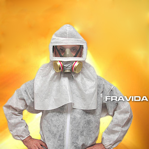 Respirador bifiltro con visor. Equipo muy liviano aplicable a tareas donde se requiera la combinación de protección respiratoria y ocular contra partículas y líquidos. Es resistente a salpicaduras y nieblas químicas, pinturas, etc. Especificaciones: Tela blanca, fuerte y liviana, con cuello elastizado. Visor amplio de policarbonato transparente. El cuerpo de la semi-máscara bifiltro es de termoplástico inyectado, antialérgico, con un sistema de sujeción de doble banda regulable. El factor de protección es mayor a 200 veces la CMP. Cumple con normas IRAM 3630, 3646, 3648, 3649 y 3650